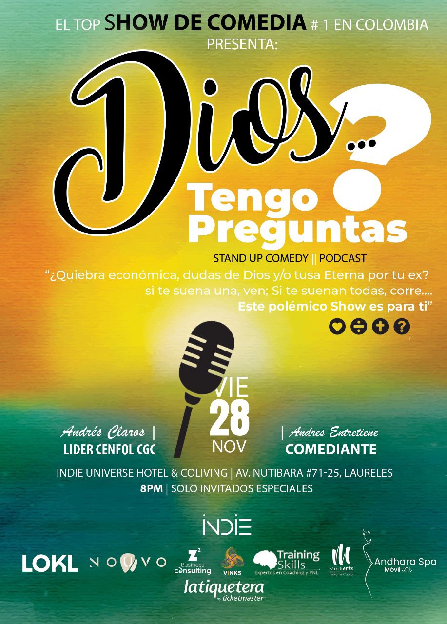 La fecha de HOY SABADO 22 - NO DISPONIBLE, PROXIMA FECHA DISPONIBLE SABADO 29 DE NOVIEMBRE https://www.eventbrite.com/e/comedia-conferencia-tickets-1974962536110?aff=oddtdtcreator